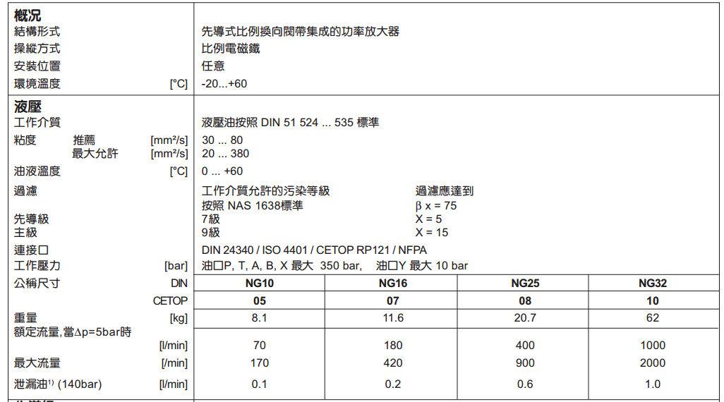 典型的应用是:流量控制精确和可实现流量调节,在快速/低速特性下的工作运行带有阀芯位置监控于:压力机控制,动态位置调节和压力/流量关闭系统。